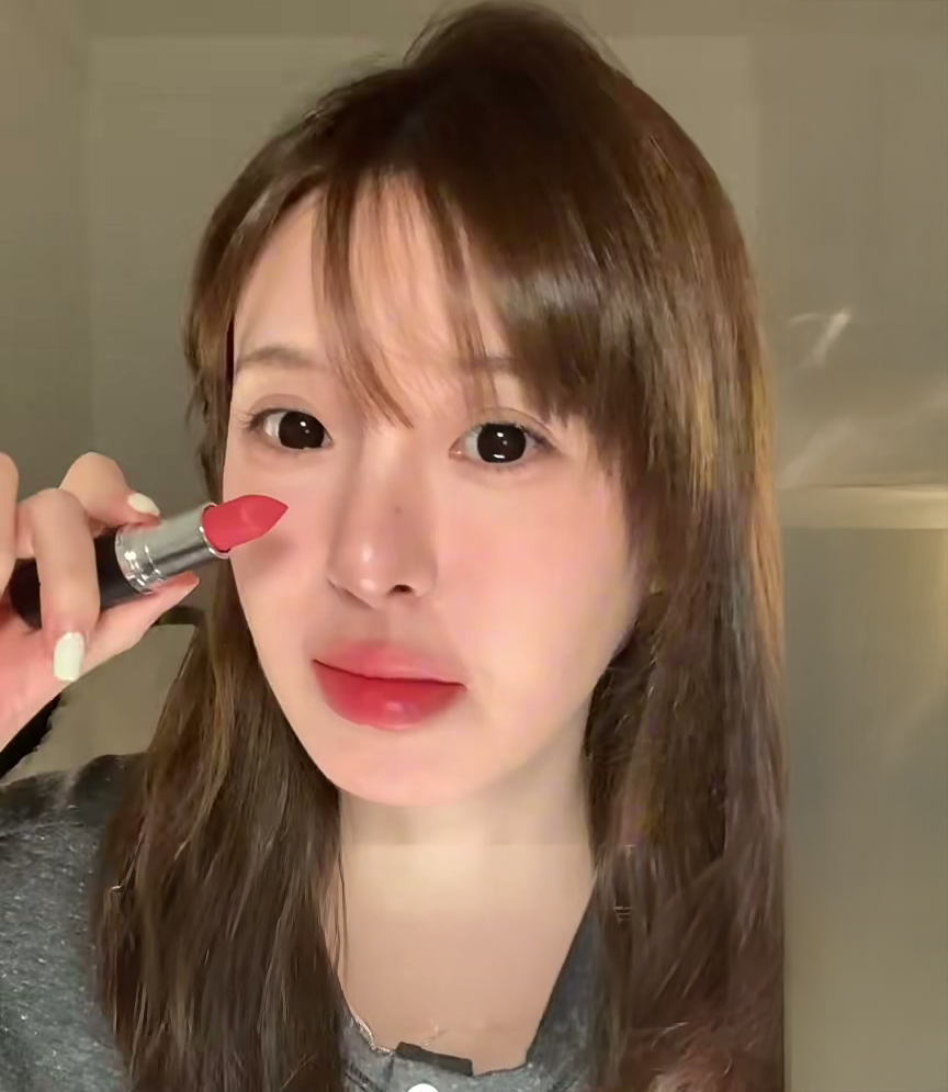 - 带妆厚涂:红调加重呈现「日落蜜桃」色,搭配大地色眼妆秒变女团C位