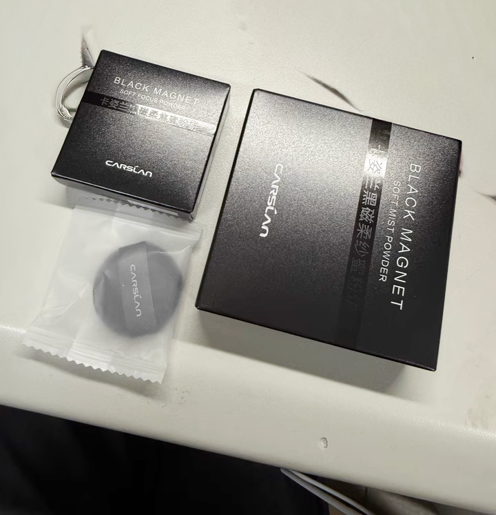 测试对象:25岁混油皮女性,晨间7:30用同款粉底液上妆,半边脸用黑磁散粉定妆,另一边用某日系大牌散粉(价格是卡姿兰的3倍)。